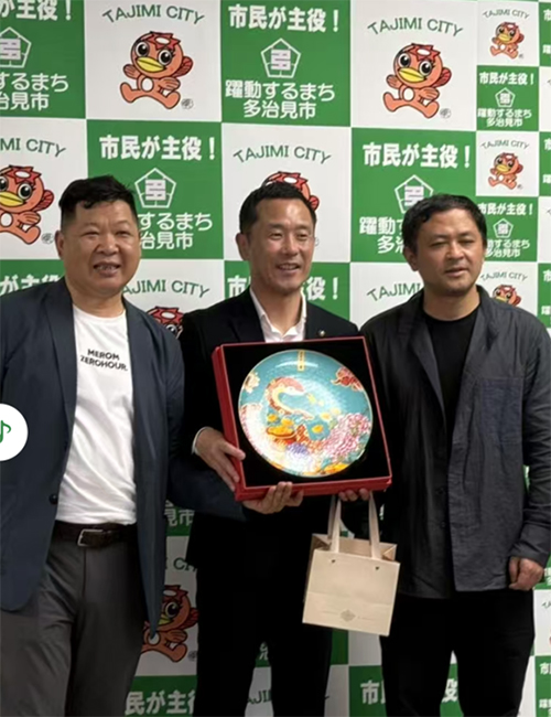與美濃展組委會工作會談現(xiàn)場日本多治見市市長高木貴行在市政廳熱情接待了余劍峰、李超并舉行了簡短會談。他首先代表政府歡迎景德鎮(zhèn)陶瓷大學代表團,對景德鎮(zhèn)市和景德鎮(zhèn)陶瓷大學的卓越發(fā)展表示祝賀,特別是對參觀2023瓷的旅程-景德鎮(zhèn)國際陶瓷藝術(shù)雙年展印象深刻。他在歡迎致辭中說這是日本東美濃地區(qū)政府出資邀請的繼36年前景德鎮(zhèn)陶瓷大學代表團(周國禎、呂品昌等)中日陶藝界、學界對美濃地區(qū)訪問后的又一次官方主導(dǎo)的陶藝文化交流活動,意義非凡,期待雙方能通過訪問加強文化互動。代表團代為轉(zhuǎn)交了景德鎮(zhèn)市政府對多治見市政府來華參加 2025 年‘1819’ 景德鎮(zhèn)國際陶瓷嘉年華的邀請并傳達陶瓷大學校方歡迎日方屆時再次訪問景德鎮(zhèn)陶瓷大學、參觀2026景德鎮(zhèn)國際陶瓷藝術(shù)雙年展現(xiàn)場。期待多治見市政府和美濃地區(qū)能夠積極參與此次活動,進一步增進雙方在陶瓷文化、產(chǎn)業(yè)等方面的交流,為兩地友好合作注入新活力。同時對景德鎮(zhèn)市和陶瓷大學的邀請表示感謝,并表示將積極考慮相關(guān)安排,爭取以此為契機,推動兩地政府和高校間在陶瓷藝術(shù)領(lǐng)域開展更多務(wù)實交流。
