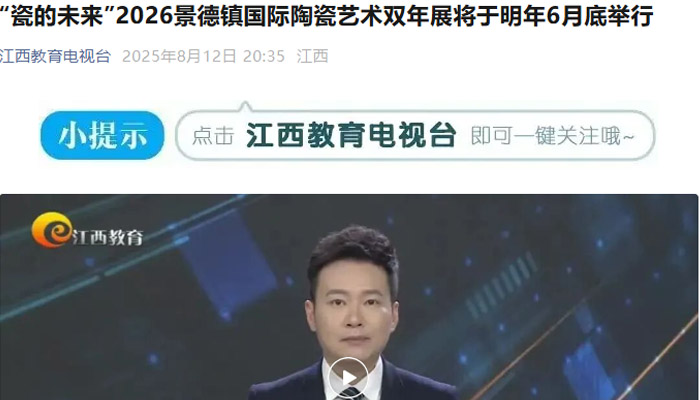 【江西教育電視臺(tái)】“瓷的未來(lái)”2026景德鎮(zhèn)國(guó)際陶瓷藝術(shù)雙年展將于明年6月底舉行