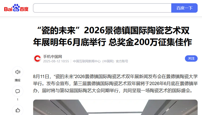 【百度】“瓷的未來(lái)”2026景德鎮(zhèn)國(guó)際陶瓷藝術(shù)雙年展明年6月底舉行 總獎(jiǎng)金200萬(wàn)征集佳作